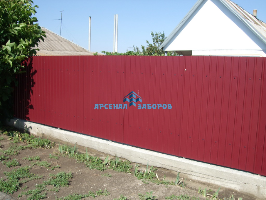 Конструкция забора из профлиста на ленточном фундаменте и с кирпичными столбами