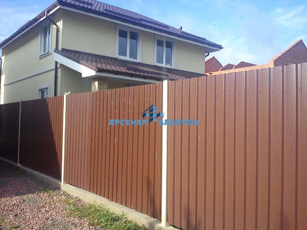Конструкция забора из профлиста с забивными столбами