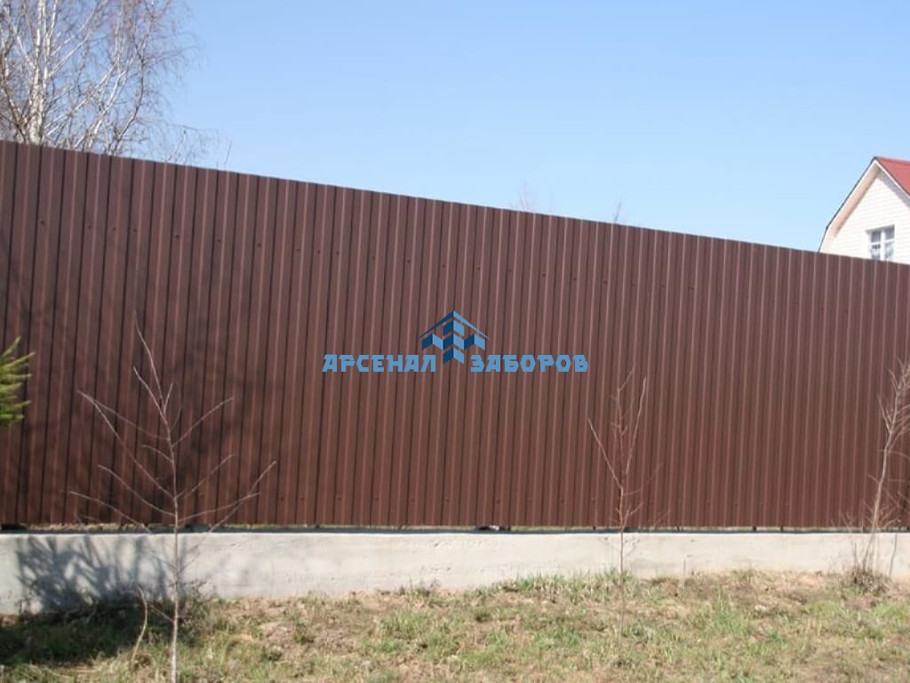 Конструкция забора из профлиста на ленточном фундаменте и с кирпичными столбами