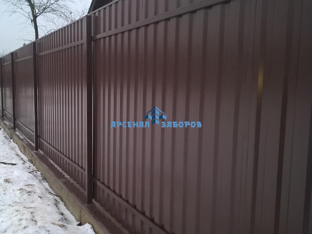 Конструкция забора из профлиста с забивными столбами