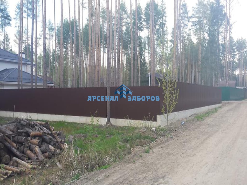 Конструкция забора из профлиста на ленточном фундаменте и с кирпичными столбами