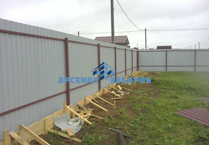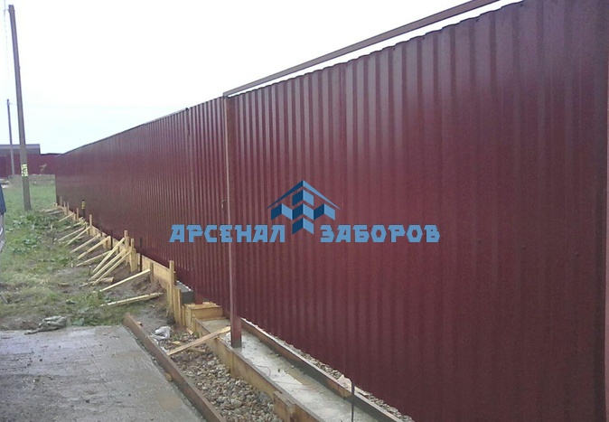 Конструкция забора из профлиста на ленточном фундаменте и с кирпичными столбами