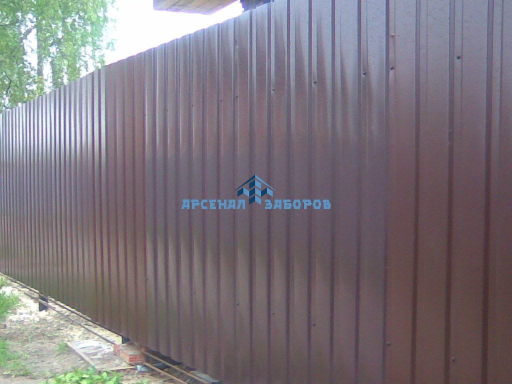 Конструкция забора из профлиста на ленточном фундаменте и с кирпичными столбами