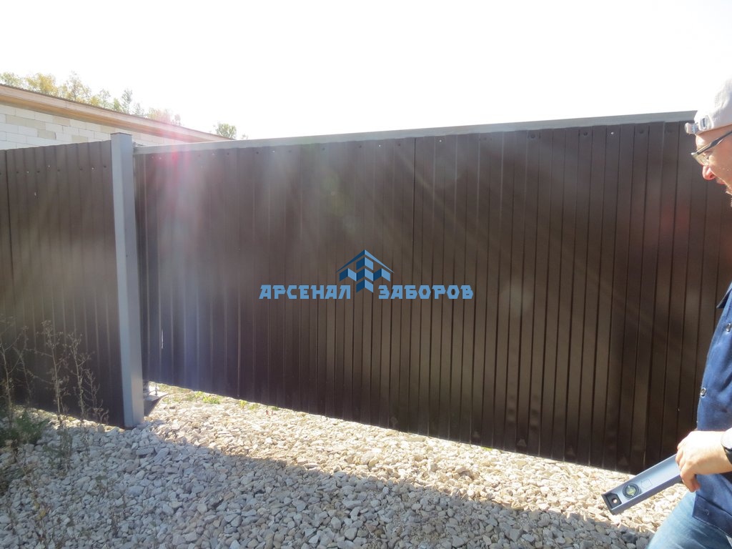Конструкция забора из профлиста на ленточном фундаменте и с кирпичными столбами