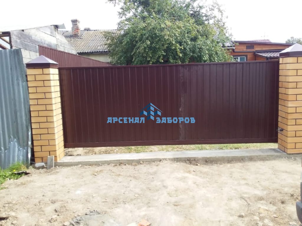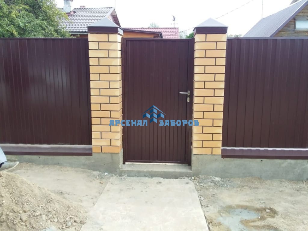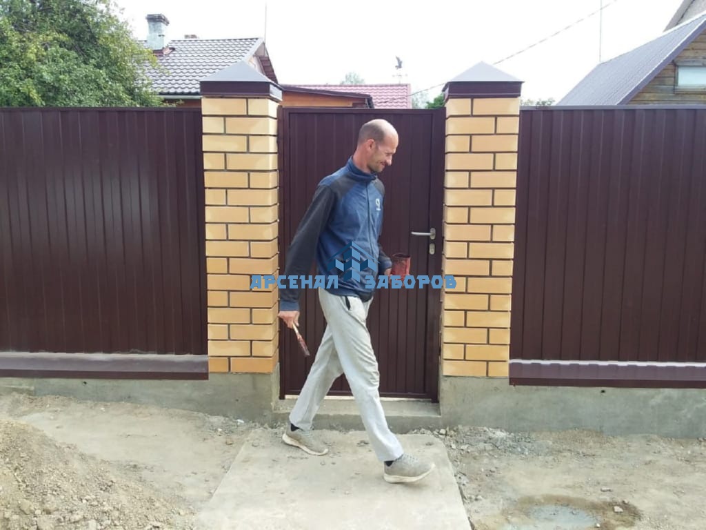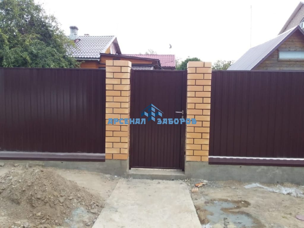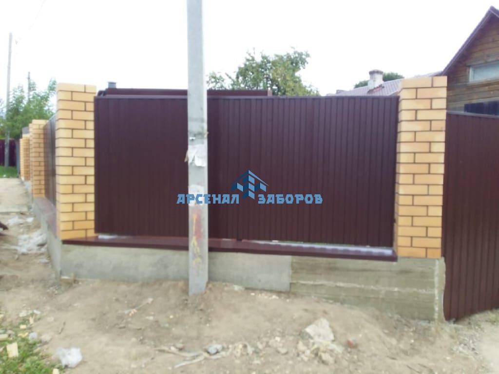 Конструкция забора из профлиста на ленточном фундаменте и с кирпичными столбами