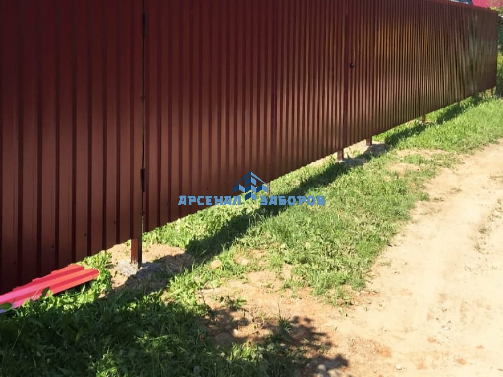 Конструкция забора из профлиста на ленточном фундаменте и с кирпичными столбами