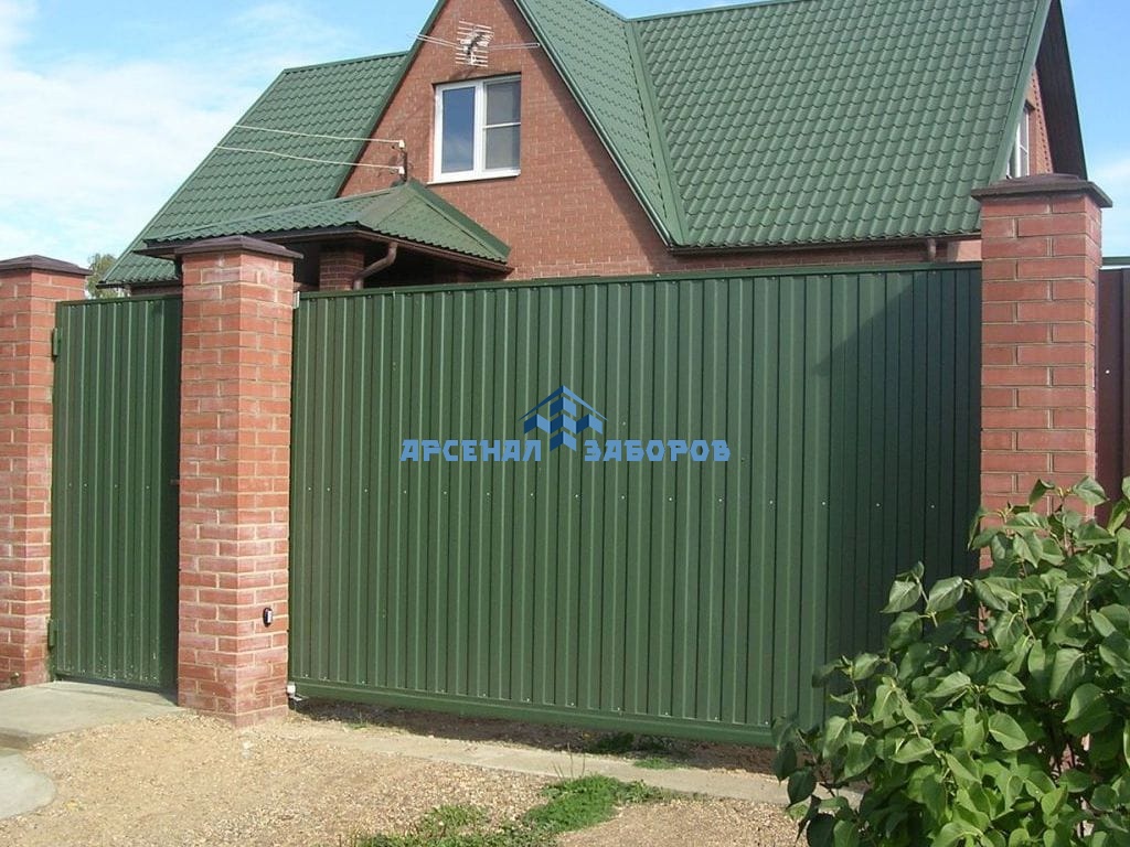 Конструкция забора из профлиста на ленточном фундаменте и с кирпичными столбами