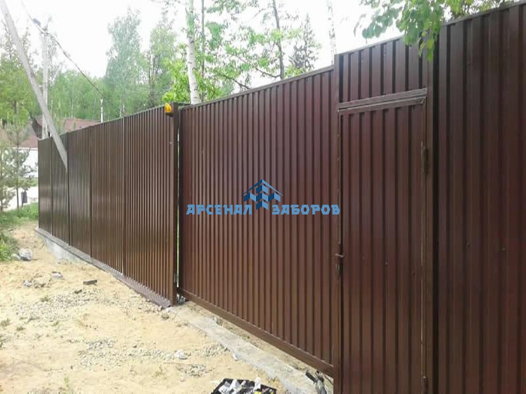 Конструкция забора из профлиста на ленточном фундаменте и с кирпичными столбами