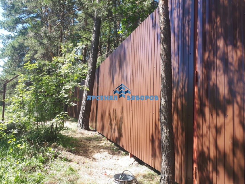 Конструкция забора из профлиста с забивными столбами